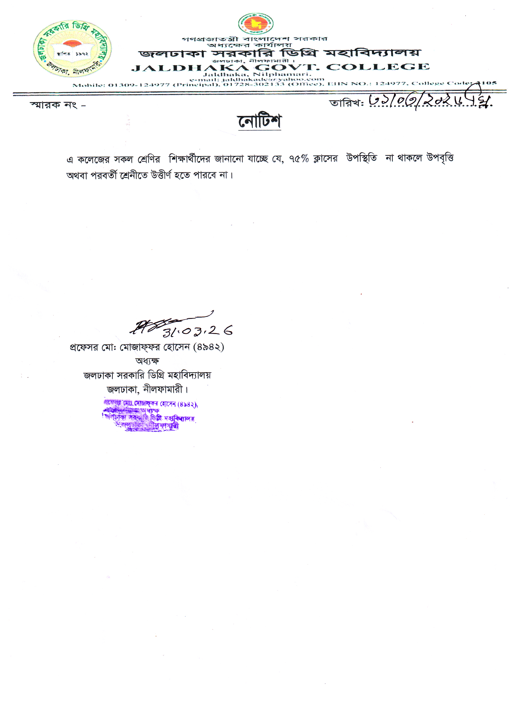 ক্লাশের উপস্থিতি সংক্রান্ত নোটিশ।