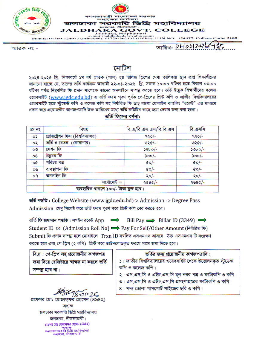 ২০২৪ ২০২৫ শিক্ষাবর্ষের স্নাতক (পাস) ২য় ও সর্বশেষ রিলিজের ভর্তির নোটিশ । |