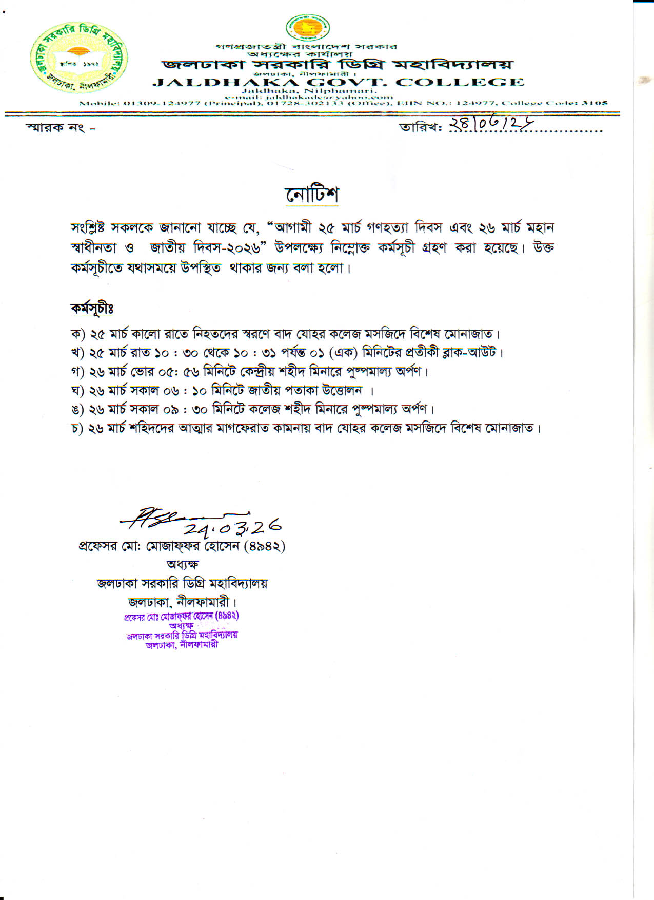 ২৫ মার্চ গণহত্যা দিবস এবং ২৬ মার্চ মহান স্বাধীনতা ও জাতীয় দিবসের নোটিশ। |