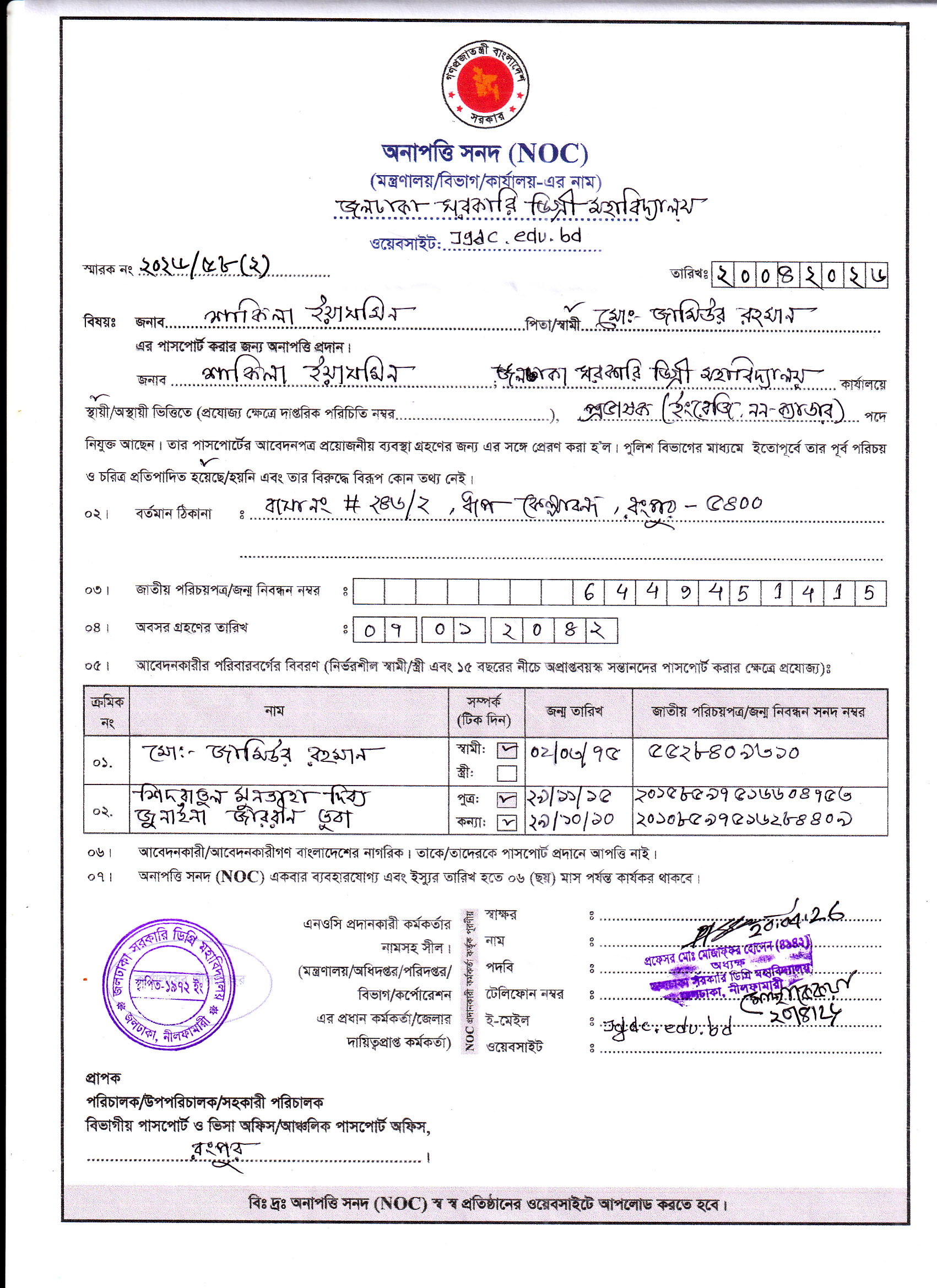 জনাব মোঃ রফিকুল ইসলাম, প্রভাষক (নন-ক্যাডার), উদ্ভিদবিদ্যা বিভাগ সাহেবের এনওসি সংক্রান্ত |
